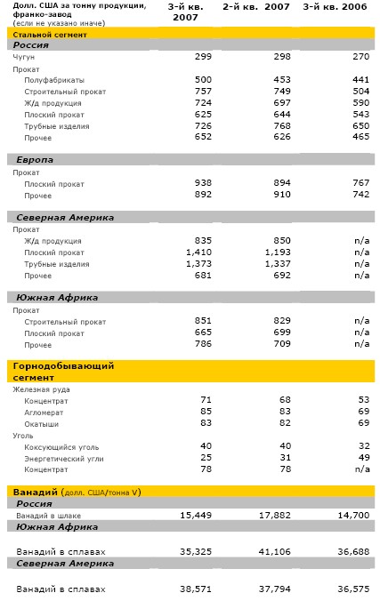 4 В пересчете на чистый ванадий. Данные включают производственные результаты "Стратиджик Минералз Корпорейшн", которые консолидируются с сентября 2006 г., и "Хайвелд Стил энд Ванадиум Корпорейшн", консолидируемые с мая 2007 г.