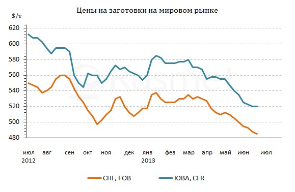 В странах Юго-Восточной Азии спрос на заготовки низкий вследствие начавшегося сезона дождей и доступности китайского готового проката, который, порой, продается дешевле полуфабрикатов. К тому же, практически все основные поставщики заготовок в страны региона ведут активные продажи и конкурируют друг с другом, сбивая цены.